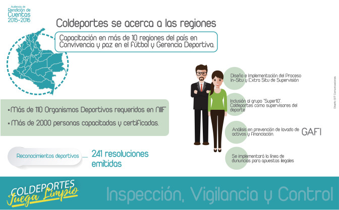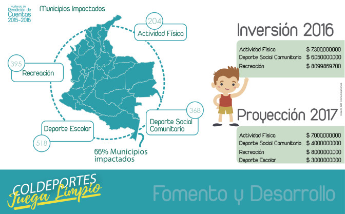 En cumplimiento de la Estrategia de Rendición de Cuentas orientada hacia los ciudadanos y grupos de interés, Coldeportes ha publicado los informes de gestión de lo corrido durante 2016, con corte a 31 de agosto. Una vez hecha la consulta, los invitamos a participar del foro habilitado y en la encuesta. Los resultados serán socializados durante la Audiencia Pública de Rendición de Cuentas de la entidad, programada para el próximo 25 de octubre.