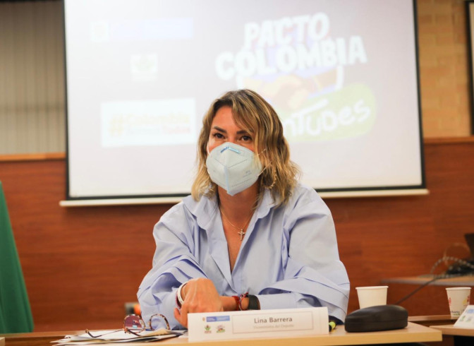 Pereira, 11 de agosto de 2021. En el marco del Pacto Colombia con las Juventudes, la viceministra del Deporte, Lina Barrera, participó este martes, en la capital risaraldense, en la mesa departamental organizada por el Instituto Colombiano de Bienestar Familiar, ICBF, y la Consejería para la Juventud, como parte de la estrategia de la Presidencia de la República para la creación del Conpes para la Juventud.