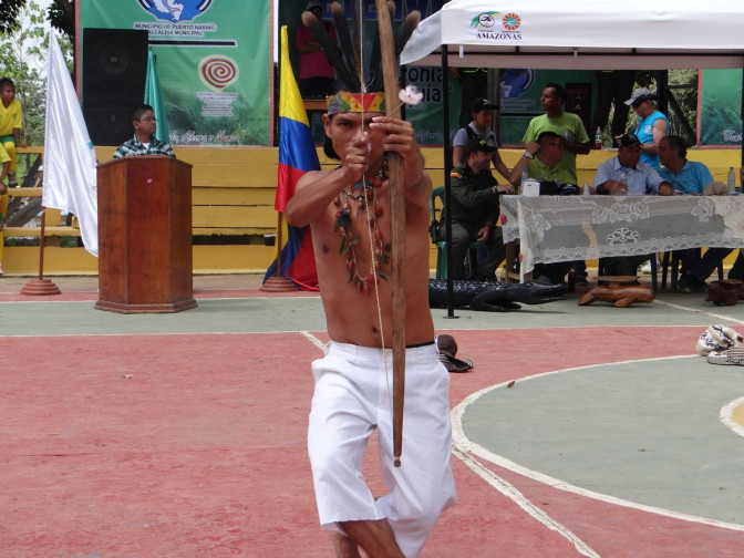 Al acto protocolario asistieron las autoridades locales, departamentales y los representantes de Coldeportes, en cabeza de su director Andrés Botero Phillipsbourne, quien al finalizar el acto de apertura, hizo entrega de cinco kits de juegos para las instituciones infantiles, la ludoteca y la unidad de deportes de la alcaldía de Puerto Nariño.Las muestras culturales engalanaron la ceremonia que estuvo animada por los niños que representaban a cada delegación y sobre las 11:30 de la mañana el río Loretoyacu fue el mayor espectador de la destreza de los representantes de la Orinoquia y Amazonia, en la que se insertan y se viven los deportes autóctonos, cuya práctica, muchas veces, la hacen a diario.Ese es el caso de los esposos Florentino Horopa y Martha Lucía Horopa, deportistas del Casanare, quienes viajaron por tierra, río y aire hasta llegar al Amazonas."Nosotros vivimos en Orocué y canaleamos todos los días por río Meta. Es la primera vez que lo hacemos en competencia. Nuestra práctica es diaria, porque tenemos que desplazarnos a la finca en donde cultivamos yuca, plátano y otros alimentos que son el sustento de la familia", nos contó Martha Lucía.Esta pareja, padres de cuatro hijos, llegó a Puerto Nariño con la convicción de trabajar para que los deportes autóctonos no pierdan su esencia y su originalidad. Para ellos, y para sus compañeros, son la referencia de múltiples culturas que los enorgullecen.Y es que para todos, turistas, visitantes y pobladores, son la oportunidad para observar esas tradiciones milenarias que evocan las reuniones de los abuelos los fines de semana en ríos y quebradas para hacer maniobras en el agua.En canotaje la fortaleza está en Vaupés