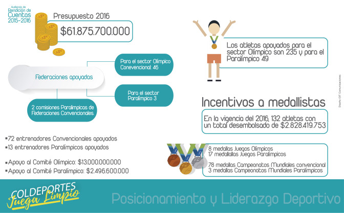 En cumplimiento de la Estrategia de Rendición de Cuentas orientada hacia los ciudadanos y grupos de interés, Coldeportes ha publicado los informes de gestión de lo corrido durante 2016, con corte a 31 de agosto. Una vez hecha la consulta, los invitamos a participar del foro habilitado y en la encuesta. Los resultados serán socializados durante la Audiencia Pública de Rendición de Cuentas de la entidad, programada para el próximo 25 de octubre.