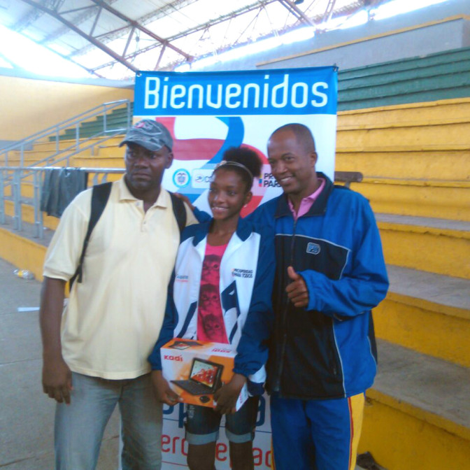 El atleta es entrenador de grandes talentos en su departamento y fue invitado por el Programa Supérate Intercolegiados de Coldeportes a entregar una Tablet a Yeiny Patricia Valencia Chalá, quien ganó incentivo en 2014.