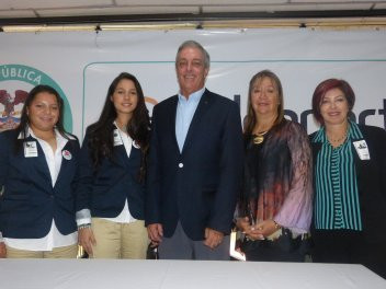 Alejandra Usquiano y Aura María Bravo, acompañadas por Maria Emma Gaviria, nombrada Vicepresidente de la Federación Mundial de Arquería, ofrecieron sus triunfos al director de Coldeportes Andrés Botero y recibieron homenaje de los funcionarios del ente rector del deporte.