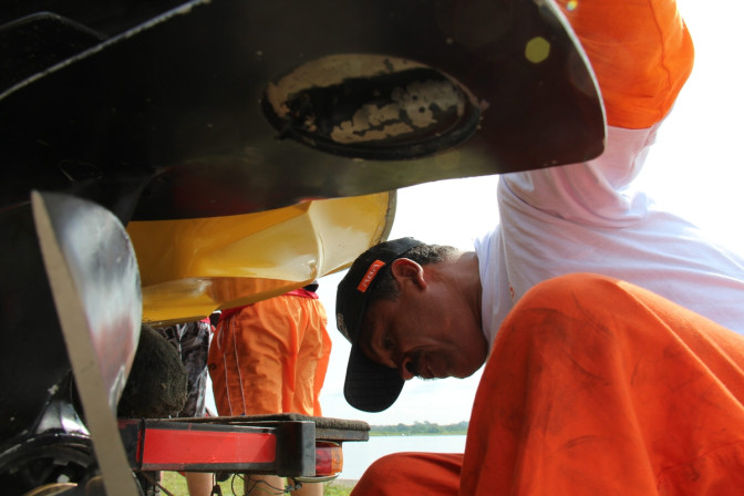 Los pilotos y navegantes aprovecharon las horas de descanso para vestirse de mecánicos, para volver a dejar a punto los motores de sus botes previo a los 260 kilómetros de recorrido entre Mompox y Barranquilla por la quinta etapa que se cumplirá el viernes.