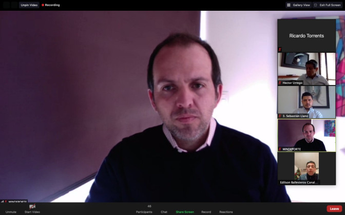 Bogotá, 16 de diciembre de 2020. Cerca de 40 periodistas colombianos, en representación de distintos medios de comunicación de todas las regiones del país, se reunieron con el ministro Ernesto Lucena y el equipo directivo del Ministerio del Deporte. El objetivo de la mesa de diálogo fue trabajar en equipo e intercambiar ideas y propuestas en beneficio del sector para el 2021.