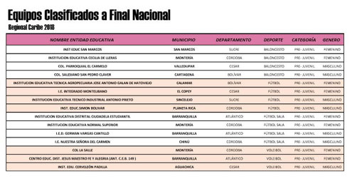 Cinco de los dieciséis equipos clasificados en la categoría prejuvenil del Regional Caribe de Supérate Intercolegiados son de instituciones de Córdoba, lo que la convierte, hasta el momento, en la delegación con mayor número de equipos clasificados superando a Atlántico, Bolívar, Cesar, Guajira, Magdalena, Sucre y San Andrés y Providencia.