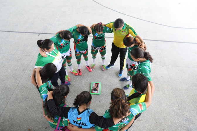 Las deportistas del equipo de futbol de salón de la Institución Educativa Braulio González de Yopal, Casanare, regresan a la capital de Arauca para la revancha por la medalla de oro que perdieron en la Final Nacional. En ese entonces, antes de la gran competencia, una de las deportistas falleció