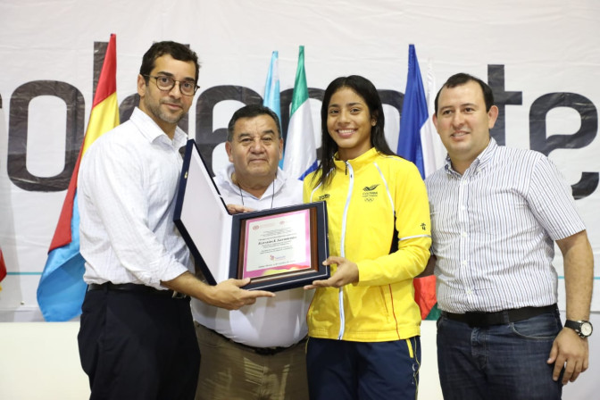 En el Coliseo Mayor de la Unidad Deportiva Bolivariana de Santa Marta se celebró la clausura del Regional Caribe de Supérate Intercolegiados. Kerstinck Sarmiento, siete veces campeona mundial de patinaje, recibió reconocimiento por parte de Coldeportes