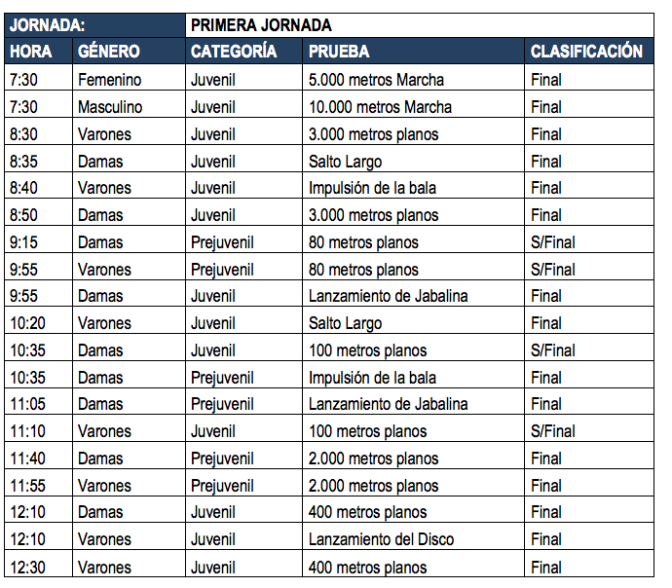 Este jueves 16 de agosto comenzarán las pruebas con la de 5.000 metros marcha femenino y 10.000 metros marcha masculino en la categoría juvenil. Esta es su programación: