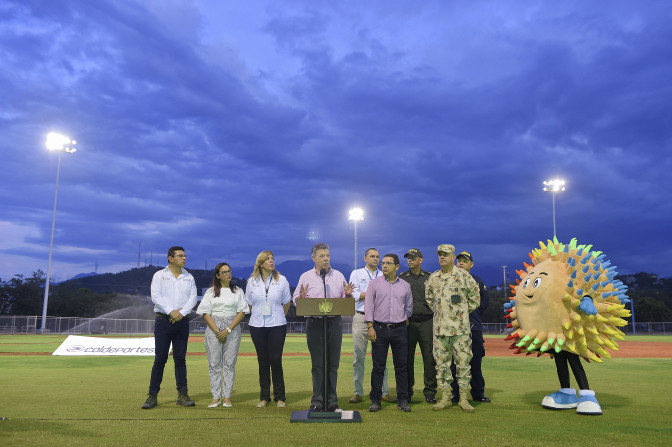 El acto se cumplió con la visita del Presidente Juan Manuel Santos y la directora de Coldeportes, Clara Luz Roldán, quienes presentaron a las autoridades locales, a los medios de comunicación y a representantes del Sistema Nacional del Deporte los 10 escenarios completamente nuevos y de primer nivel, infraestructura compuesta por los estadios de béisbol y sóftbol, la cancha de rugby, el patinódromo, los complejos de raquetas y acuático, los coliseos menor y, además de las pistas de atletismo y de BMX.