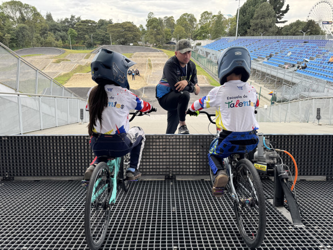 Bogotá, octubre 18 de 2025. Con la adrenalina propia del partidor, los 70 participantes del Encuentro Nacional de Escuelas de Talento de BMX disfrutaron de la actividad de cierre en el lugar ideal: la pista Carlos Ramírez de Bogotá, donde se cumplieron este viernes las tomas de tiempos.