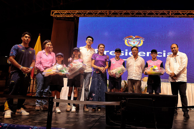 Así mismo, la ministra del Deporte afirmó para agradecer al presidente y destacó que este programa representa un hito para el deporte escolar en Colombia, porque garantiza el acceso a una educación integral que incluye al deporte como una herramienta de aprendizaje, protección y construcción de proyectos de vida.A partir de un trabajo intersectorial con el Ministerio de Educación, se implementan dentro de las instituciones educativas los denominados Centros de Interés Deportivo donde niñas, niños y adolescentes participarán en la práctica de diversas disciplinas dirigidos por un formador, divididas en dos sesiones semanales de dos horas cada una.Por su parte, el ministro de Educación, Daniel Rojas Medellín, afirmó: "creemos firmemente que la educación es el camino para construir un futuro distinto. Nuestras niñas, niños y jóvenes en los territorios merecen oportunidades reales, no más violencia. Una educación con dignidad, que los forme para la vida y para la paz; y el deporte es una de esas puertas que nos ayuda a lograrlo".Durante el acto de inauguración, que tuvo una muestra de bailes típicos, se destacó también la presencia del gimnasta Ángel Barajas, medallista de plata en los Juegos Olímpicos de París 2024 y un símbolo de inspiración para los 700 jóvenes presentes.Precisamente, Barajas se encargó de acompañar a los niños en la entrega de kits para sus respectivos Centros de Interés, que incluyen elementos de coordinación, aros, lazos, petos, valla de salto, tulas, tallímetro, báscula digital, colchonetas, balón espuma, bomba inflador, manila y balones de voleibol, microfútbol y baloncesto.Este programa prioriza 20 disciplinas deportivas: tenis de campo, bádminton, tenis de mesa, fútbol, baloncesto, voleibol, fútbol sala, ajedrez, béisbol, natación, patinaje, levantamiento de pesas, gimnasia, frisbee, break dance, tejo, arco de iniciación y flechas. También, se incluirán Para deportes como gólbol y boccia.Con el lanzamiento oficial de la Jornada Deportiva Escolar Complementaria, en el que estuvieron también el Alcalde de Ocaña, Emiro Cañizares; el Gobernador de Norte de Santander, William Villamizar y la Gobernadora del Cesar, Elvia Milena Sanjuán, el Gobierno del Cambio le cumple a 128 mil niñas, niños y adolescentes y a los estudiantes colombianos con espacios para una educación integral e igualdad de oportunidades.