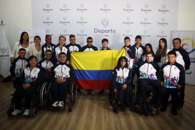 "Me llena el corazón compartir con estos para atletas y en nombre del Gobierno nacional les deseo de corazón todos los éxitos en este gran reto", destacó emocionada la ministra del Deporte, Patricia Duque. El ministerio invirtió para la preparación y participación en estos juegos, 5.834 millones de pesos.Colombia participará con 128 para atletas en Chile (34 mujeres y 94 hombres), entre los 18 y 21 años, y competirá en las 14 disciplinas: boccia; fútbol para ciegos: fútbol PC; gólbol; baloncesto en silla de ruedas 3x3; baloncesto en silla de ruedas 5x5; para judo; para atletismo; para natación; para powerlifting; para tenis de mesa; tenis en silla de ruedas; voleibol sentado y para tiro con arco."Acá está la reserva deportiva del país que con su tenacidad llevará con honor la bandera del país en este gran evento. Nuestra delegación está compuesta por para atletas de la Colombia profunda", dijo el presidente del Comité Paralímpico Colombiano, José Aldíver García.En la pasada edición, en los V Parapanamericanos Juveniles Bogotá 2023, Colombia participó con 109 deportistas y fue primera del medallero con 106 metales (52 oros; 30 platas y 24 bronces).