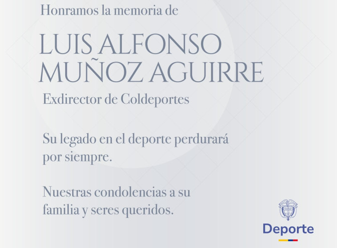 Sin embargo, su paso más importante por la entidad se dio entre 1993 y 1995, cuando fue nombrado por el presidente César Gaviria como director. Durante su gestión, promovió la Ley del Deporte (Ley 181 de 1995), una normativa trascendental que sentó las bases del Sistema Nacional del Deporte en Colombia, fortaleciendo la institucionalidad, ampliando la cobertura, y dignificando la labor de los atletas, entrenadores y dirigentes.Esa visión permitió estructurar políticas públicas deportivas con enfoque social, cimentando el camino para que el deporte se convirtiera en un verdadero instrumento de desarrollo y cohesión nacional.Su buena gestión, también, se vio reflejada en la Federación Colombiana de Hockey y Patinaje a la que llegó en 1978 como parte del comité provisional. Pero lo que parecía iba ser un lapso corto, se terminó convirtiendo en 12 años en los que posicionó al deporte como un referente en el país y en la región.Durante sus presidencias, se obtuvieron las primeras siete medallas en campeonatos mundiales, gracias a las gestas de Guillermo León Botero, Luz Mery Tristán y Claudia Ruíz, primeros campeones mundiales colombianos en la categoría de mayores. Así mismo, fue clave para realizar el Campeonato Mundial de Hockey, el Campeonato Mundial de Patinaje Artístico en Bogotá en 1980 y 1986, y el Mundial de Carreras en 1984.El deporte, para Luis Alfonso Muñoz Aguirre, fue mucho más que competencia: fue un vehículo de transformación social. Su liderazgo visionario dejó huellas profundas no solo en las pistas, sino en la estructura misma del deporte colombiano, consolidando un legado que aún inspira a nuevas generaciones de dirigentes, entrenadores y atletas. Desde el Ministerio del Deporte expresamos nuestras más sinceras condolencias a sus familiares.